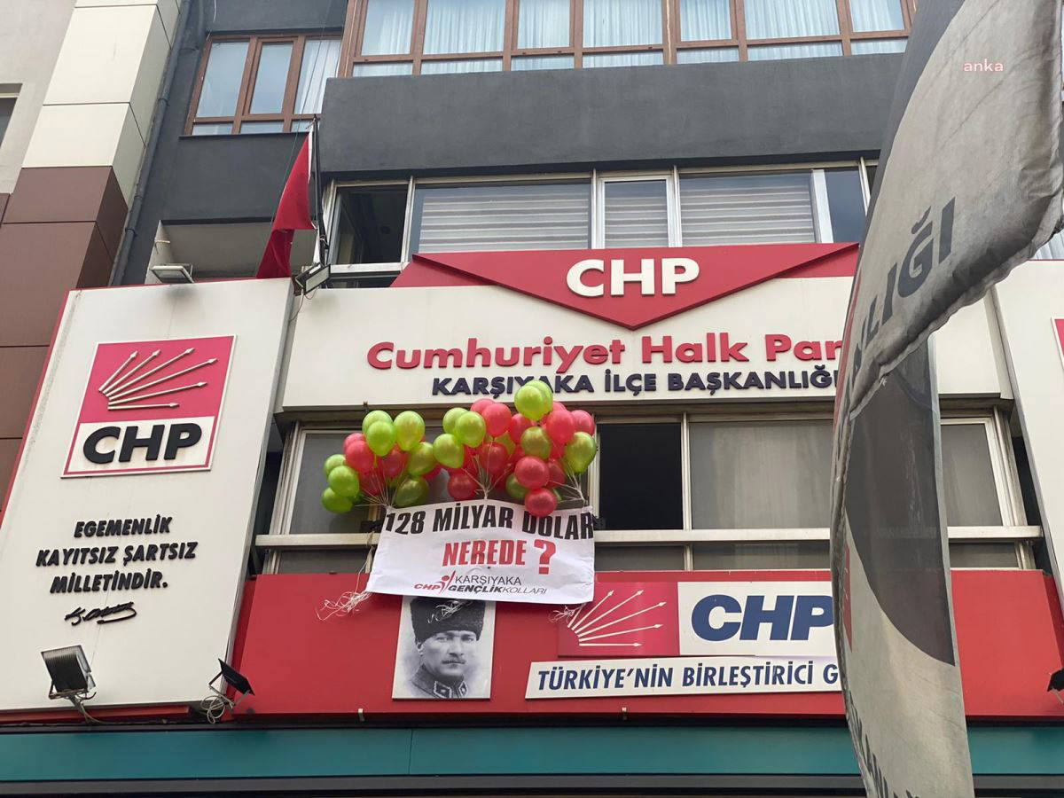 İzmir Karşıyaka CHP ilçe binasında balonlu "128 milyar dolar nerede" eylemi yapıldı. CHP Karşıyaka Gençlik Kolları üyeleri ilçe binası tabelasının üzerine balonlara bağlı şekilde "128 milyar dolar nerede" yazılı pankart astı. Polis ekipleri müdahale etmek için geldiği sırada helyum gazı ile şişirilmiş balonlar serbest bırakılarak pankart gökyüzüne bırakıldı.