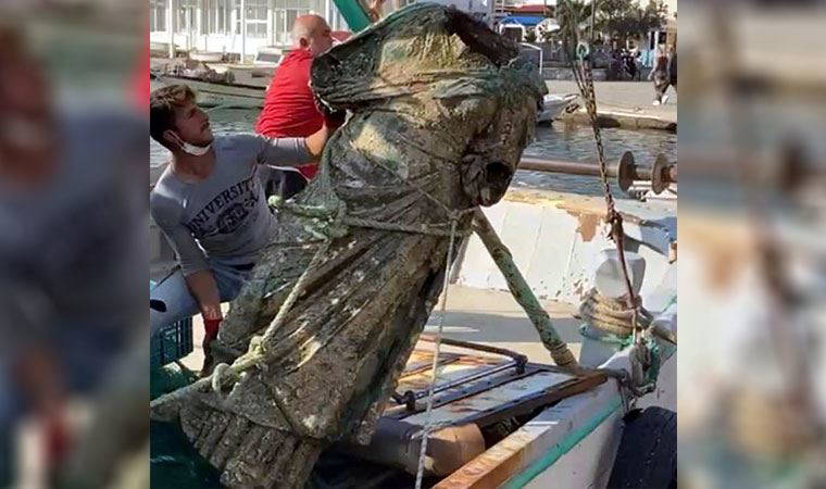 Marmaris'e 70 kilometre mesafede bulunan Bozburun ile Selimiye mahalle sınırları açıklarında Bodrumlu balıkçılar, dün saat 06.00 sıralarında ağ attı. Balıkçılar, 2,5 saat sonra 50 metre derinliğe attıkları ağlarını çekerken, bol balık tuttuklarını düşünüp, büyük heyecan yaşadı. Uzun uğraşlar sonucu çektikleri ağdan balık yerine bronz kadın heykeli çıkan balıkçılar, büyük şaşkınlık yaşadı. Heykeli teknelerine alan balıkçılar, durumu telsizle Sahil Güvenlik Marmaris İlçe Komutanlığı ekiplerine bildirdi.