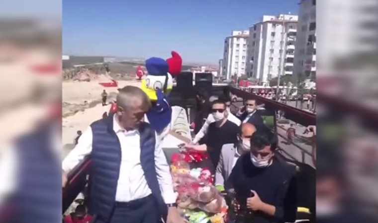 Şahinbey Belediyesi Başkanı Tahmazoğlu, 23 Nisan’da belediye otobüsü üzerinden çocuklara oyuncak fırlattı. Çocuklar otobüs üzerinden atılan oyuncakları almaya çalışırken izdiham yaşandı.