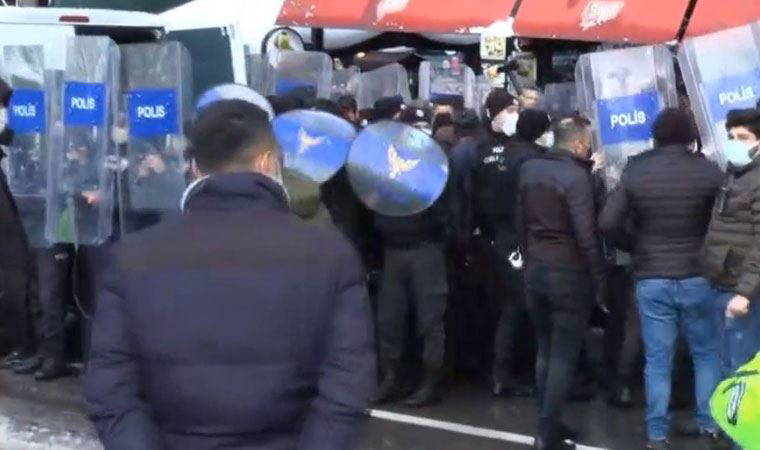 Polisin, kameraları kalkanlarla kapatarak ve basın mensuplarını sürekli uzaklaştırarak görüntü alınmasını engellemesi dikkat çekti.