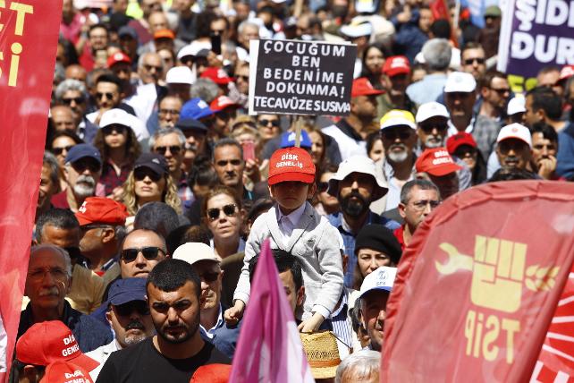 'Yaşasın 1 Mayıs', 'Kurtuluş yok tek başına ya hep beraber ya hiç birimiz' şeklinde slogan atılan kutlamalara CHP Genel Başkan Yardımcıları Yıldırım Kaya ve Veli Ağbaba ile CHP ve HDP’li çok sayıda milletvekili de katıldı. Kutlama öncesi iş kazalarında ölen işçiler için bir dakikalık saygı duruşunda bulunuldu. Şanlıurfa'da 1 Mayıs kutlamalarına giderken kaza yapan otobüste ölen 5 kişi de anıldı.