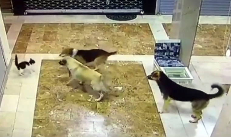 Esnaf Tufan Altunbüken, ise kediye yıllardır esnafın baktığını belirterek, “Kedi biraz agresif bir kedi. Daha önce de böyle yavrularını koruduğu olmuştur. Bu kez de güvenlik kamerasından gördüğümüz kadarıyla yavrusuna saldıran 3 köpeğe birden saldırıp onları kovalıyor. Her ne kadar kedi olsa da ana yüreği işte” dedi.