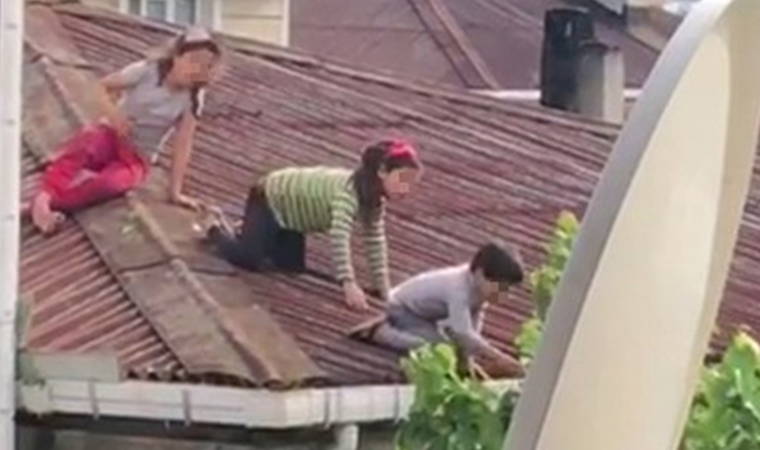 Anne pazara gitti, çocuklar çatıda böyle görüntülendi