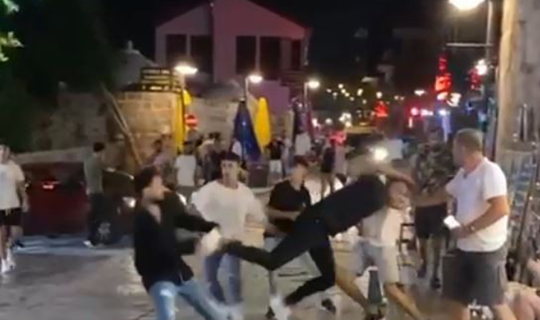 Tüm bu olanlar çevredeki yerli ve yabancı turistlerin gözleri önünde yaşanırken, darp edilen gencin kaçmasıyla kavga son buldu.