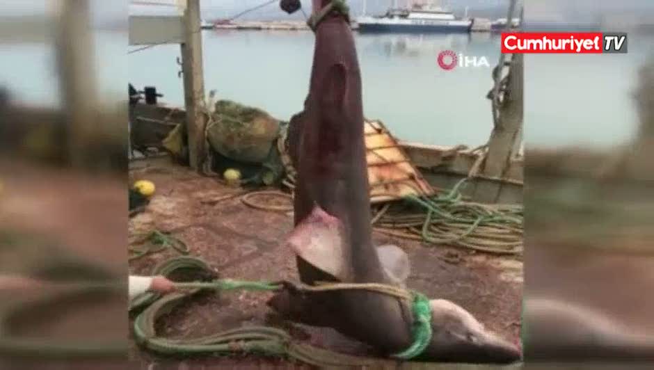 Antalyalı balıkçıların ağına dev köpekbalığı takıldı