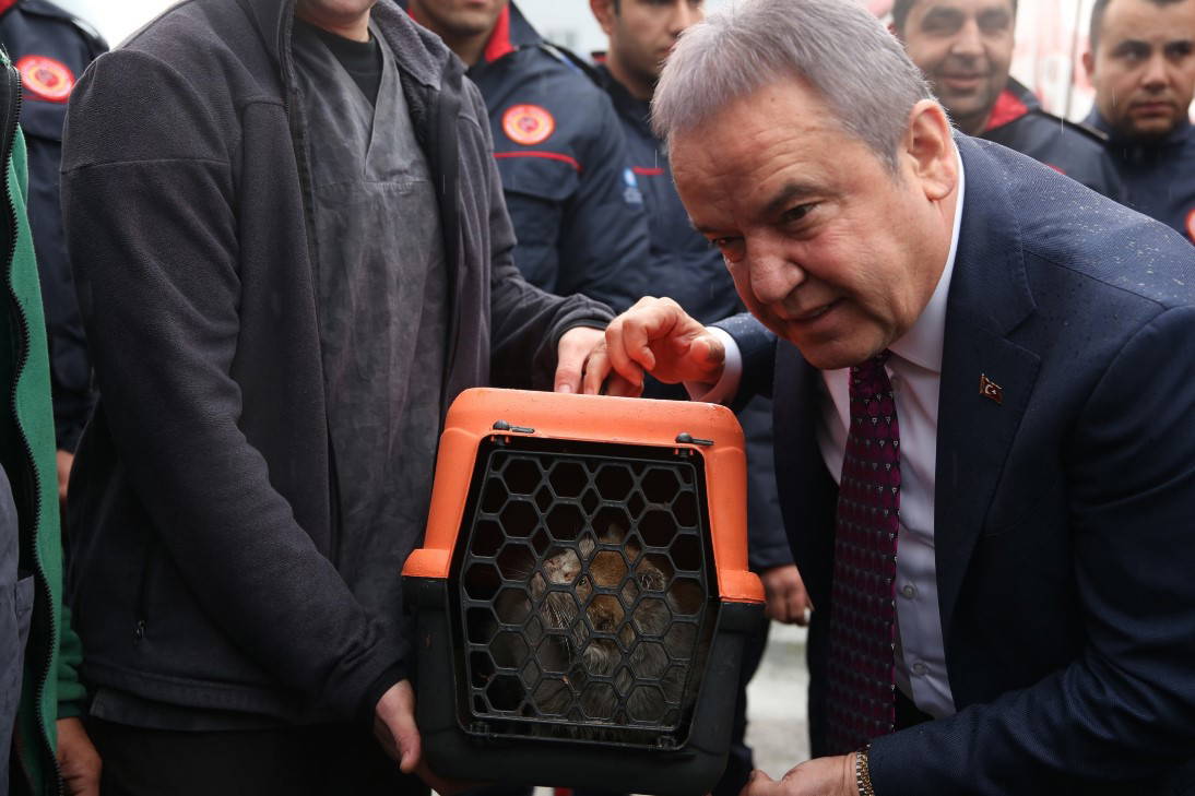 Depremden yaralı olarak kurtulan kediyi Antalya Büyükşehir Belediyesi’nin sahiplendiğini dile getiren Böcek, “Veterinerlerimize teslim ettik. Adını ‘Toros’ koyduk. Belediyemizin her şeyi olacak. Hayvanseverlerimiz endişelenmesin.” diye konuştu.