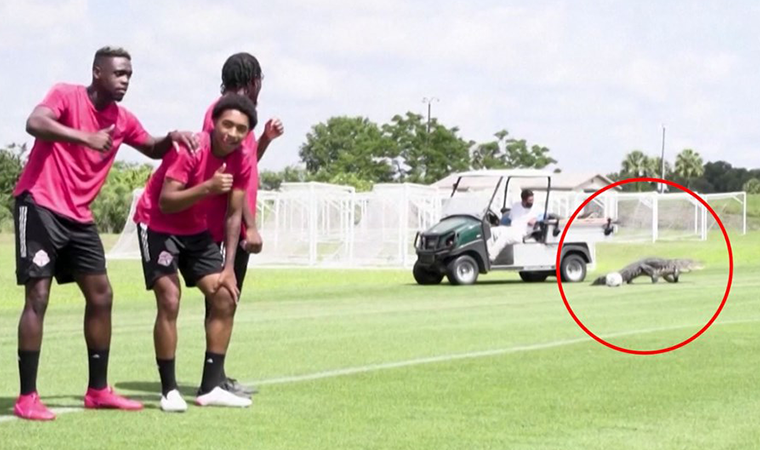 ABD'de profesyonel futbol ligi karşılaşması için Florida eyaletinin Orlando şehrine giden Toronto Futbol Kulübü oyuncuları, antrenman sahasında dev bir timsah ile karşılaştılar.