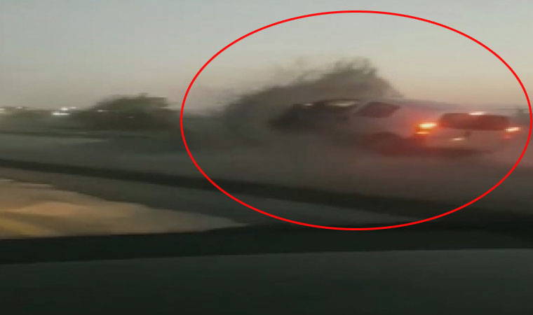 hafif ticari aracın sürücüsü kum yığına çarptı. O anlar bir başka sürücü tarafından cep telefonu kamarası ile kaydedildi. Kaza anını görüntüleyen araç sürücüsü ve araçta bulunan diğer kişilerin şaşırdığı, araç sürücüsünün daha sonra "Bir şey olmaz" dediği görüntülere yansıdı