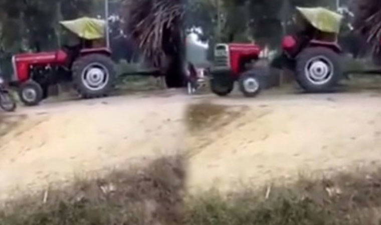Hindistan'da aşırı yüklü bir traktör, başka bir araç tarafından çekilmesi için halatla araca bağlandı, ancak aracın hareket etmesiyle traktör ikiye ayrıldı. Bir görgü tanığı o anları kameraya aldı.