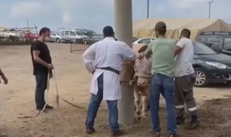 Ataşehir'de kurban pazarında büyükbaş kurbanlık kesim öncesi direğe bağlandı. Sıra geldiğinde kurbanlık kesim alanına götürülmek istendi. Yürümemekte direnen kurbanlığın tekmelediği kasap bir anda yere yığıldı. Bayılan kasap hastaneye götürüldü. Kasabın durumunun iyi olduğu öğrenildi.