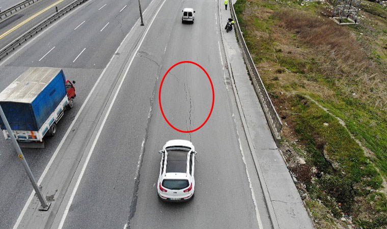 Avcılar'da E-5 yan yolda korkutan çatlaklar
