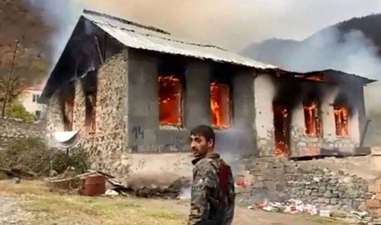 Ermenilerin kaçarken evlerini yakmaya başladığı görüntüler ortaya çıktı. Videolarda, askerlerin de bulundu görüldü. Ermenilerin Rus televizyonlarına yaptıkları röportajlarda ise ''Bir daha buraya dönmeyeceğiz'' açıklamalarında bulundukları evlerini bu yüzden yaktıkları ortaya çıktı.