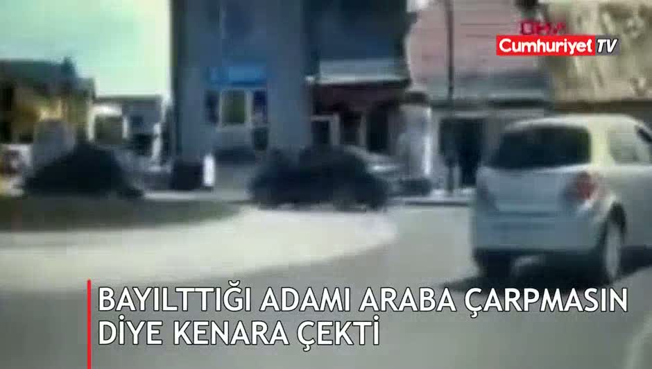 Bayılttığı adamı araba çarpmasın diye kenara çekti