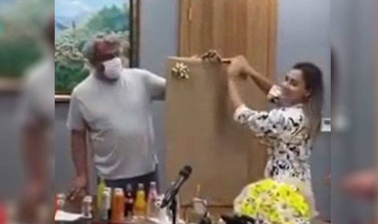 Işık’ın doğum gününde kutlamanın yapıldığı oval masanın üzerinin hediyelerle dolu olduğu görülüyor.