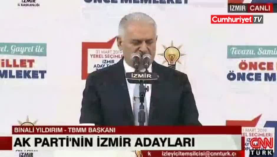 AKP'nin İstanbul adayı ve TBMM Başkanı Binali Yıldırım, İzmir'deki konuşmasında büyük bir gafa imza attı. AKP'nin İzmir için 30 ilçenin belediye başkan adayını açıklayacağı toplantıda konuşan Binali Yıldırım, Cumhurbaşkanı Recep Tayyip Erdoğan'ın adını zikrederek "İzmir, Recep Tayyip Erdoğan'ı Adnan Menderes Havalimanı'ndan bilir." demesine karşın adı geçen havalimanı AKP iktidarından önce 1987 yılında açılmıştı.