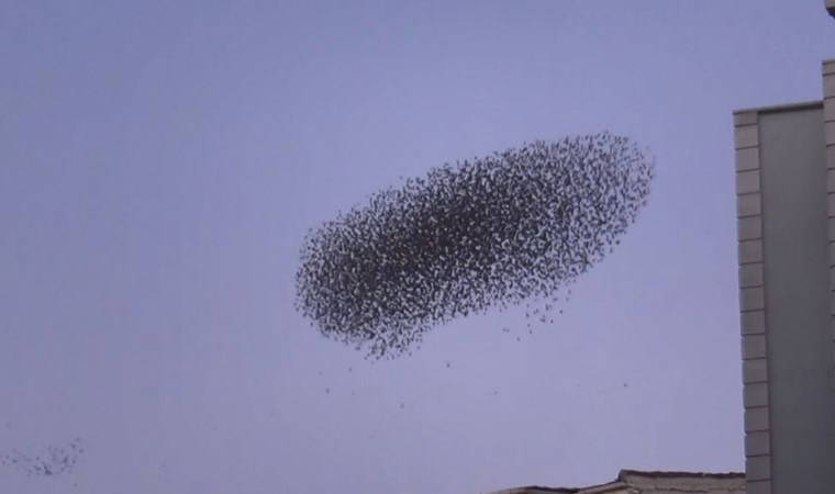 Sığırcıkların gökyüzündeki dansını vatandaşlar hayranlıkla izledi. Dans edercesine sergilendikleri hareketlerle görsel şölen sunan kuşlar, havanın kararmasıyla birlikte ortadan kayboldu.
