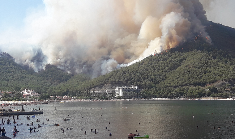 Edinilen bilgiye göre, Marmaris Siteler mevkiindeki ormanlık alanda çıkan yangını söndürmek için yangın söndürme ekipleri 40 dereceye ulaşan sıcakta alevlerle boğuşurken, diğer yanda ise kimi tatilciler deniz keyfinden ödün vermedi. Marmaris’in ciğerleri yanarken, kimi tatilcilerin İçmeler Plajı’nda deniz ve kum keyfi yapması görüntülere yansıdı. Oteller bölgesindeki tatilcilerin ellerindeki kovalarla su taşıyıp yangına müdahale etmesinin yanında, plajdaki insanların istifini bozmaması ve rahat tavırları ise tezat görüntü oluşturdu.