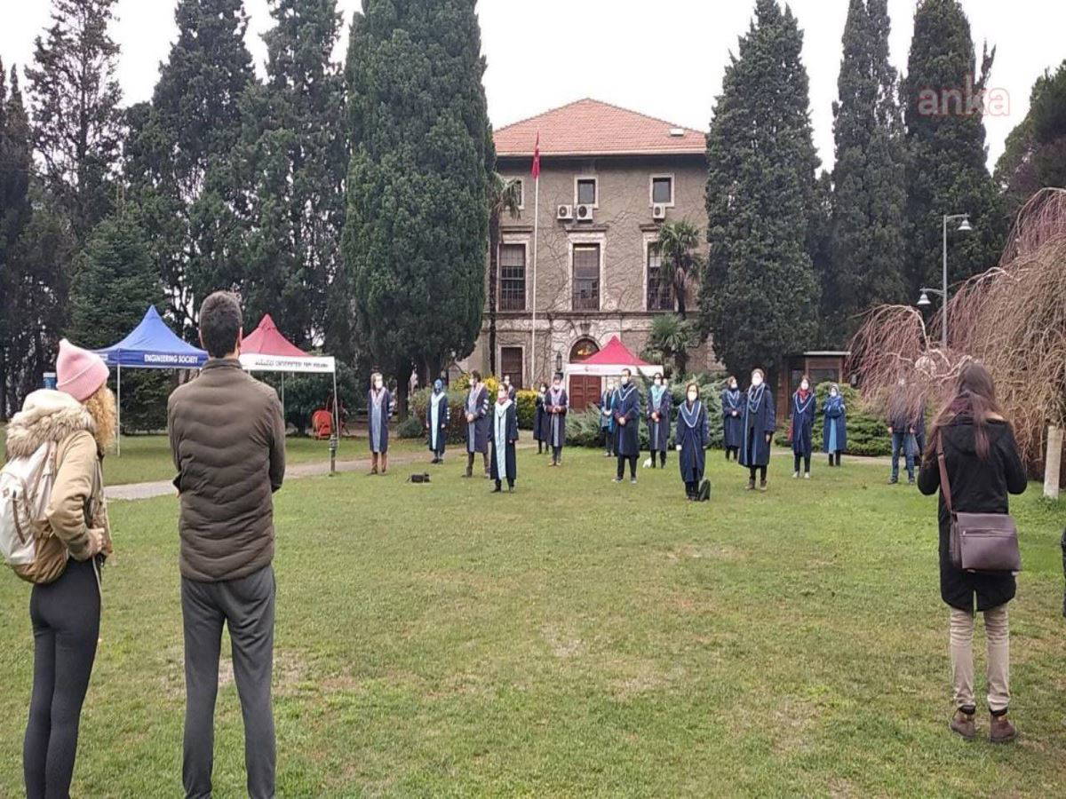Boğaziçi Üniversitesi Rektörlüğüne Prof. Dr. Melih Bulu'nun atanmasını protesto eden öğrenciler bugün de kampüste bir araya geldi. Soğuk ve yağmura aldırış etmeden eylemlerini sürdüren öğrencilere hocaları da destek veriyor. Hocalar da bugün sabah saatlerinde yine cüppelerini giyerek rektörlük binasına arkalarını döndüler.