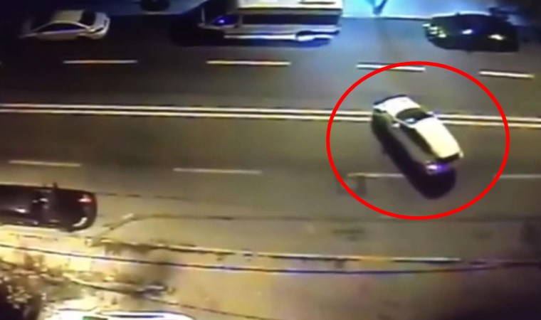 Dört aracın karıştığı kaza anı güvenlik kamerasına yansıdı. Görüntülerde, cadde üzerinde hızla ilerleyen bir otomobilin, 'U' dönüşü yapan bir araca arkadan çarptığı ve yol kenarında park halinde bulunan iki otomobile çarparak durabildiği, arkadan gelen başka bir aracın ise kaza yapan otomobili teğet geçtiği görülüyor.