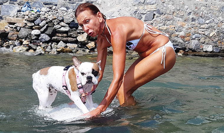 Olga Mumtıarvs Kovid-19 salgını nedeniyle Bodrum’da yaşadığını ifade ederek, “Türkle evlendim ve Türkiye’ye yerleştim. 3 aydır salgın nedeniyle Bodrum’da yaşıyorum. Köpeğim denize girmekten korkuyordu. Strafor köpüğünden sörf tahtası yapıp üzerine koyarak yüzmeyi öğretmeye çalıştım. Yüzmeyi öğrendi ama sörf tahtasını hiç bırakmadı. Sörf tahtası olmadan denize girmiyor. Eğer sörf yaparken düşerse hemen yeniden sahile yüzerek gidiyor ve sörf tahtasını getirmemi bekliyor. Bende her sabah sörf tahtasıyla denize getiriyorum köpeğimi” dedi.