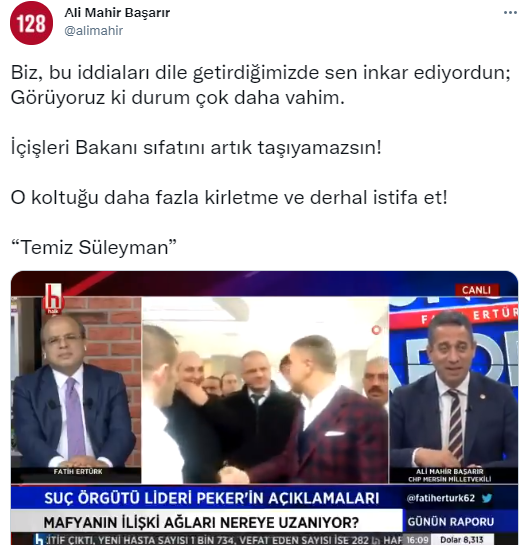 Biz, bu iddiaları dile getirdiğimizde sen inkar ediyordun; Görüyoruz ki durum çok daha vahim. İçişleri Bakanı sıfatını artık taşıyamazsın!