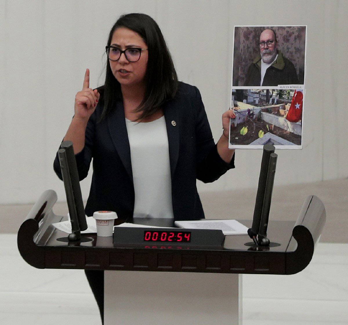 CHP adına söz alan isimlerden İstanbul Milletvekili Saliha Sera Kadıgil Sütlü, koronavirüsnedeniyle hayatını kaybeden Devlet Tiyatroları sahne ve kostüm tasarımcısı Ali Cem Köroğlu'nun fotoğrafını Meclis kürsüsünden gösterdi.
