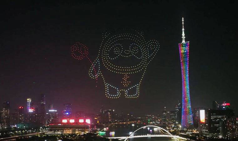 Çin'in Guangzhou kentinde Sevgililer Günü'nde Olimpiyat sporcularını neşelendirmek için 520 drone ile bir ışık gösterisi düzenlendi.