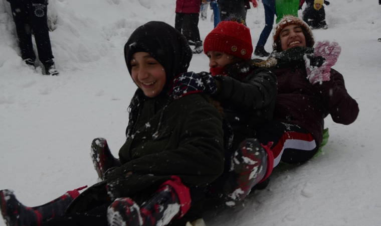 Hakkari’de etkili olan yoğun kar yağışı hayatı olumsuz etkiledi. Yüzlerce yerleşim yeri yolunun ulaşıma kapandığı kentte kar yağışına en çok sevinen çocuklar ise mahalle yollarını mesken tutarak kaymanın tadını çıkarttılar. Gazi Mahallesi yolunda bir araya gelen çocuklar, poşet ve tahta kızaklarla kayarak doyasıya eğlendi.