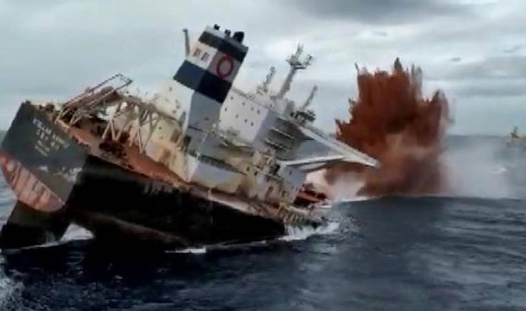 Brezilya Sahili'nde demir cevheri yüklü Stellar Banner, karaya oturmasından üç aydan fazla bir süre geçtikten sonra batırılmak üzere yeniden yüzdürüldü. 300 bin ton kapasiteli Büyük Demir Cevheri Gemisi Cuma günü Maranhão'dan yaklaşık 150 km uzakta kasıtlı olarak batırıldı.O anlar kameraya an be an yansıdı.