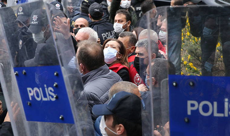 DİSK Genel Başkanı Arzu Çerkezoğlu'nun da aralarında bulunduğu 3 kişinin girişine izin verilmesinin ardından arbede sona erdi.