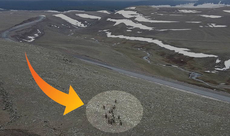 Kars'ın Selim ve Sarıkamış ilçe sınırlarında gezen domuz sürüsü, drone ile görüntülendi.