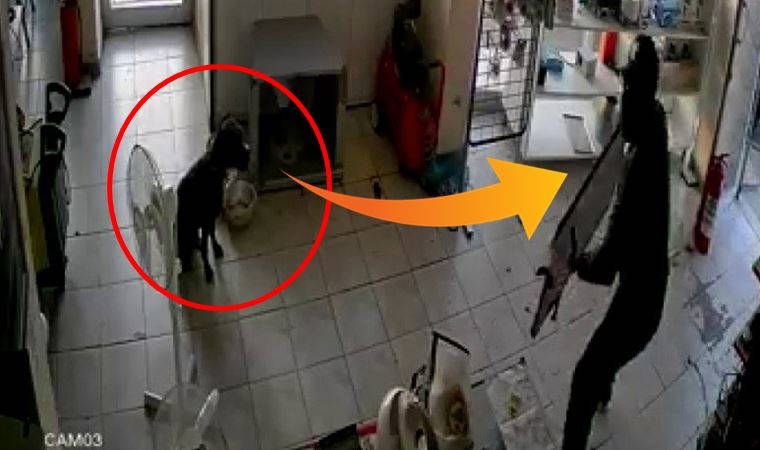Güvenlik kameralarına yansıyan görüntülerde hırsızlar siyah bir araçla dükkana geliyor, kapıyı kırarak içeri giriyor. Hırsızlar daha sonra dükkanda bulunan malzemeleri alarak kayıplara karışıyor. Dükkanda bulunan köpek de olayı şaşkınlık izliyor.