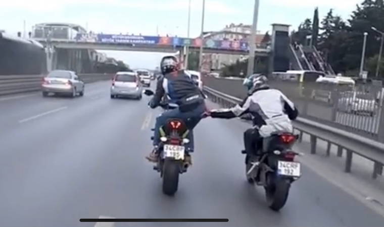 E-5 Karayolu Büyükçekmece mevkisinde seyir halinde olan 3 motosikletli maganda, hem dans ederek hem de birbirlerine tekme ve yumruk atarak trafiği tehlikeye düşürdü. Magandalar o anları sosyal medyadan paylaştı.