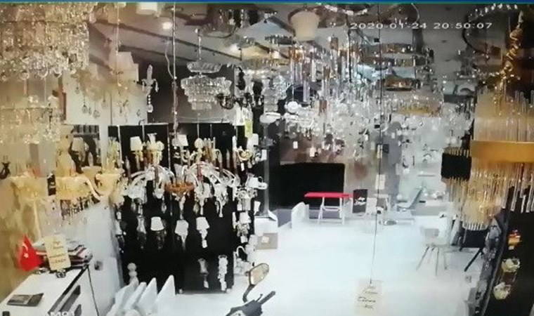 Elazığ ve Malatya başta olmak üzere çevre illerin yanı sıra başka ülkelerde de hissedilen 6.8 şiddetindeki deprem anına ilişkin en net görüntülerden birini Adıyaman'daki bir avizecinin güvenlik kameraları kaydetti.