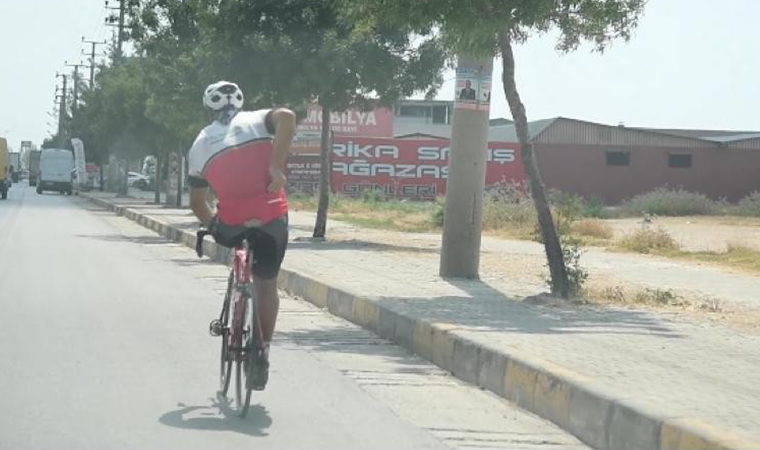 Adana'da bir bacağı olmayan engelli bir kişinin trafikte bisiklet sürerken kamyonete tutunup yolculuk yapması görenleri hayrete düşürdü.
