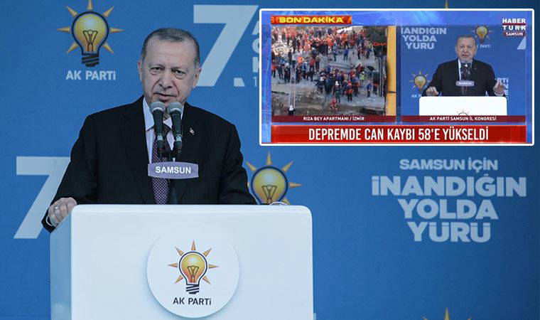Erdoğan, AKP Samsun 7. İl Kongresi'nde açıklamalarda bulundu. Cumhurbaşkanı, konuşmasına İzmir'deki deprem ile başlayarak, vefat eden vatandaşlara Allah'tan rahmet dilediğini belirterek, yaralı vatandaşlara da şifa dileklerini aktardı.Daha sonra gündemi değerlendiren Cumhurbaşkanı Erdoğan, AKP Samsun İl Teşkilatı'na 2023 seçimleri ile ilgili mesaj verdi. Erdoğan, "Hanımlar, gençler 2023 seçimlerini, seçimlerden önce kazanmaya var mısınız" ifadelerini kullandı. Erdoğan'ın seçim konuşması sosyal medyada tepkiye neden oldu.