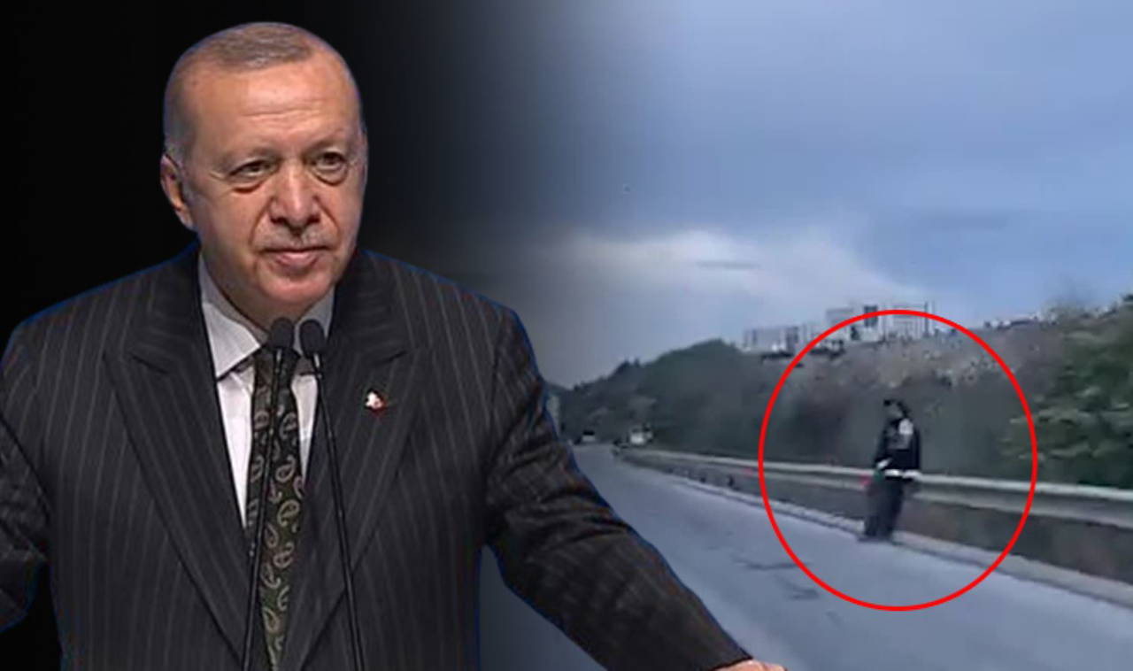 “Burası Adana-Mersin karayolu, Cumhurbaşkanı Recep Tayyip Erdoğan Mersin’e geliyor. O sebeple otoyolun kenarlarında her 100 metre aralığında gördüğünüz gibi polisler nöbet tutuyor, ne yazık ki? Kendi halkından, kendi vatandaşından korkan bu kadar arasına mesafe koymuş bir Cumhurbaşkanı, henüz görülmedi. Gerçekten inanılır gibi değil. Konvoyları gördük. Yüzlerce araçlık konvoylar gördük. Ama her 100 metre aralığında polis göreceğimiz hiç aklıma gelmezdi. Yağmur altında memurlar, yolun kenarlarında bekliyorlar. Anlaşılan korku dağları aşmış. Şu görüntüler gerçekten inanılır gibi değil. Bakın, köprü üstleri polisler tarafından korunuyor. Jandarmalar aynı zamanda. Polis ve jandarma ekipleri bir arada.”