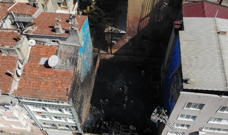 Öte yandan yangının sıçradığı binalar drone ile havadan görüntülenirken, yükselen dumanlar kilometrelerce uzaktan görüldü. Yangının çıkış nedeni araştırılıyor.