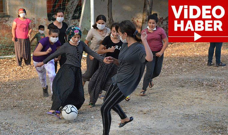 Dorak Mahallesi’nin park alanı yanında bulunan arsaya kale direklerinin kurulmasının ardından genç kızlar büyük heyecanla maç yaptı.
