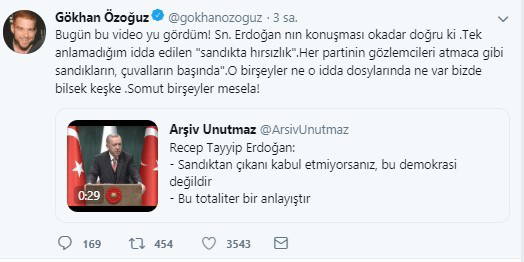 AKP'li Cumhurbaşkanı Erdoğan'ın "Sandıktan çıkanı kabul etmiyorsanız, bu demokrasi değildir. Bu totaliter bir anlayıştır." sözlerini söylediği konuşmasının videosunu paylaşan Özoğuz İstanbul seçimlerine ilişkin şöyle konuştu; Bugün bu videoyu gördüm! Sayın Erdoğan'nın konuşması o kadar doğru ki...Tek anlamadığım iddia edilen "sandıkta hırsızlık". Her partinin gözlemcileri atmaca gibi sandıkların, çuvalların başında. O bir şeyler ne? O iddia dosyalarında ne var biz de bilsek keşke... Somut bir şeyler mesela!