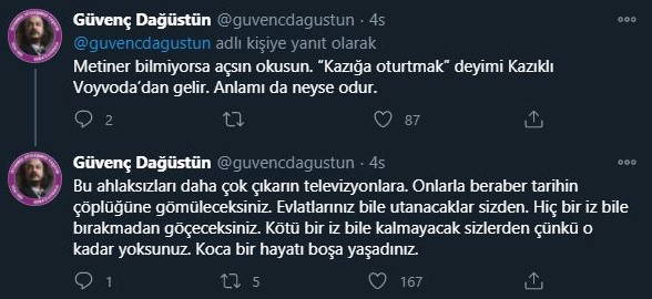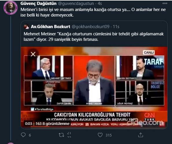 Twitter'dan Metineri'in ilgili sözlerinin yer aldığı videoyu paylaşan Dağüstün videonun altındaki yorumlarında şöyle devam etti;