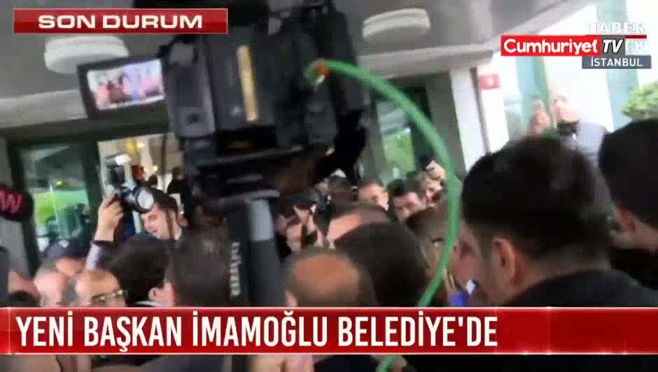 İstanbul Belediye Başkanı Ekrem İmamoğlu, Saraçhane'de bulunan İstanbul Büyükşehir Belediyesi binasına giriş yaptı.