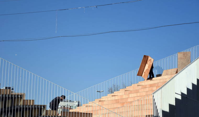 Ekiplerce, serginin oturma kısımlarındaki tahtaların sökülmesine başlandı.