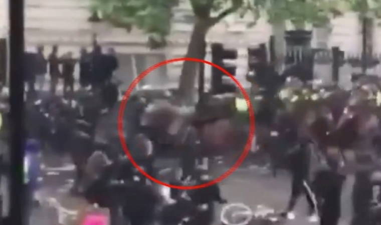 ABD'de George Floyd'un polis tarafından öldürülmesiyle patlak veren protestolar, İngiltere'de devam ediyor. 'Siyah yaşam önemlidir' sloganıyla başlayan protestolarda, Londra polisi eylemcilere 'atlı polis' ekibiyle müdahale etti. Polisi üstünden atan bir at, kalabalığa doğru son hızla gitti. Eylemcilerin atı görerek, kaçmasıyla olayda yaralanan olmadı.