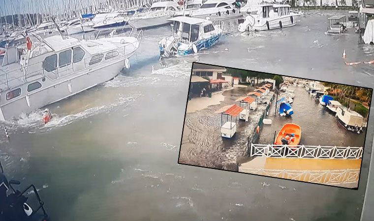 Sığacık Mahallesi’ndeki marinadaki güvenlik kameralarına yansıyan görüntüler tsunaminin şiddetini gözler önüne serdi. Deprem öncesi denizde oluşan dalgalanma ve ufak bir girdabın oluşması ise güvenlik kameraları tarafından saniye saniye kaydedildi. Denizdeki olaydan 2 dakika sonra deprem olduğu ve ardından denizdeki sular çekildi, marinadaki yatlar karaya oturdu. Daha sonra suların geri gelmesi ile birden yükselen deniz, kimi yatları devirdi kimilerini ise yan yatırdı. Birçok yatın zarar gördüğü tsunamide marninada bulunan otomobiller de denize sürüklendi. Denizdeki hareketlenmeyi fark eden bazı otomobil sahipleri son anda otomobillerini marinadan çıkartarak tsunamiden kaçmayı başarırken, vatandaşlar da çaresizce canlarını kurtarmaya çalıştı. Kısa süre içerisinde marina başta olmak üzere kale içi mevkiini sular altında bırakan tsunami önene ne varsa katıp götürdü. Yaşanan o panik anları ve denizdeki hareketlenme ise marinanın güvenlik kameraları tarafından an be an kaydedildi. Denizin yükseldiğini hisseden bazı tekne kaptanları akıntıya karşı son sürat gitmeye çalıştığı da kameralara yansıdı.
