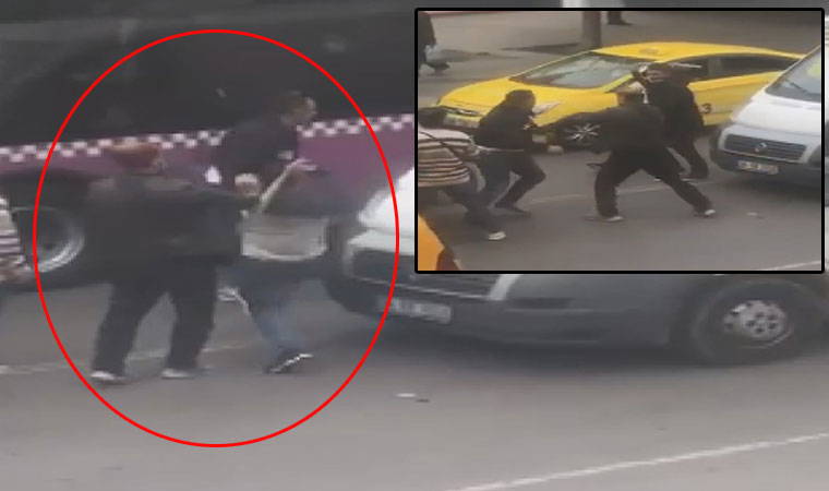 Kadıköy'de trafikte yol verme nedeniyle başlayan tartışma sopalı kavgaya dönüştü. O anlar cep telefonu kamerasına yansıdı.