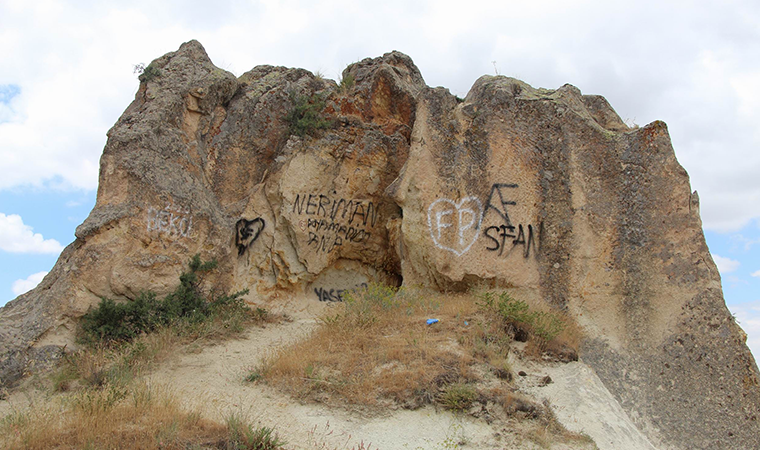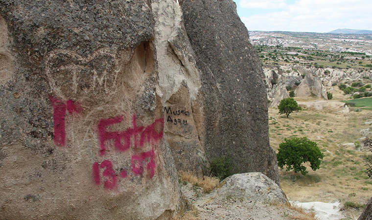 UNESCO Dünya Kültür Mirası listesinde yer alan Kapadokya bölgesinde bulunan peribacalarına kimliği belirsiz kişi veya kişiler tarafından sprey boyalar ile isimlerinin yanı sıra bir çok yazılar yazan kişiler yerli ve yabancı turistlerin büyük tepkisini çekti.