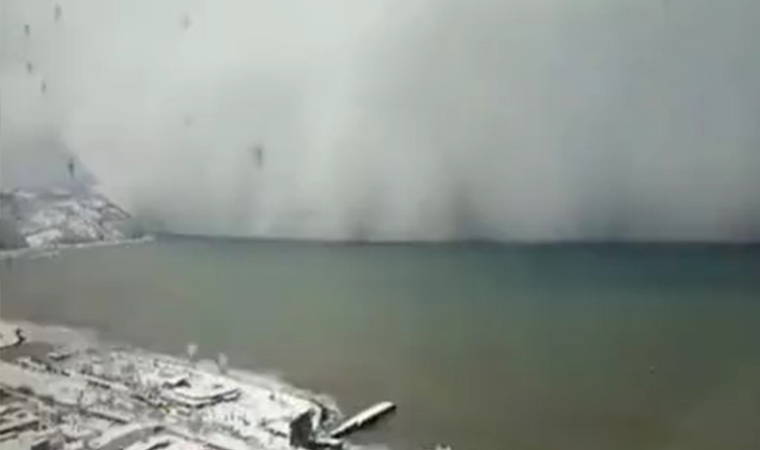 Kar fırtınası deniz üzerinden böyle geldi