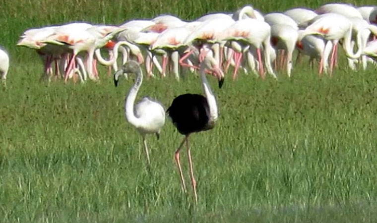 Develi, Yahyalı ve Yeşilhisar ilçelerinin sınırında bulunan Sultan Sazlığı Milli Parkı'na göçmen kuşların yeniden akın etmeye başladığı belirtilerek, "Yüzlerce flamingo arasında kameralara takılan siyah flamingo, alanı görmeye gelen ziyaretçilerde de adeta şaşkınlık yarattı. Çok nadir olarak kameralara takılan siyah flamingo, son olarak Adana Akyatan-Tuzla Yaban Hayatı Geliştirme Sahası'nda gözlemlenmişti. Flamingoların tüylerindeki kırmızı renk tonlarının, yedikleri yiyeceklerin içerdiği karotin miktarına göre değiştiği, az karotin içeren besinler aldıklarında tüylerinin daha beyaz olduğu, ancak bazı flamingoların aşırı ölçüde siyah pigmentlenmesi, başka bir deyişle bolca melaninle (siyah pigmentle) depolaması nedeniyle yaygın türünün aksine tamamen siyah renkte olabileceği bilimsel kaynaklarda belirtilmiştir" denildi. Ayrıca, dünyada çok az rastlanan siyah flamingonun fotoğrafları da paylaşıldı.