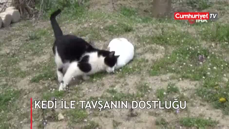 Kedi ile tavşanın dostluğu görenleri şaşırtıyor